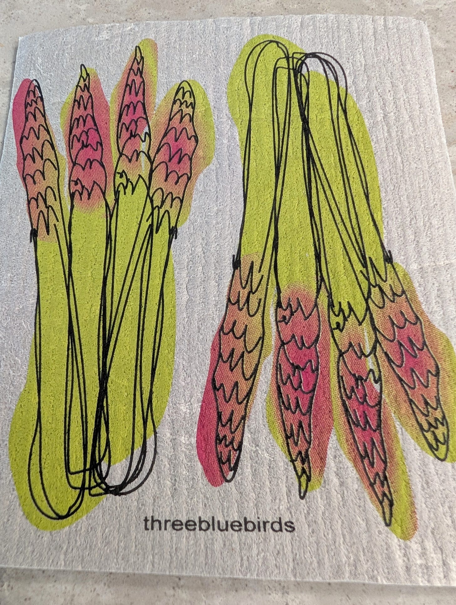 Swedish dishtowels are both environmentally useful and fun. They can be washed and reused over and over, saving on paper towels. I purchase mine from Audubon or Three Blue Birds (threebluebirds.com), which has quite pretty designs, but you can find them in many other places these days.